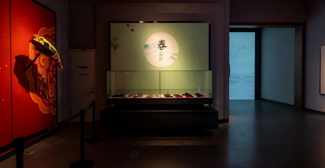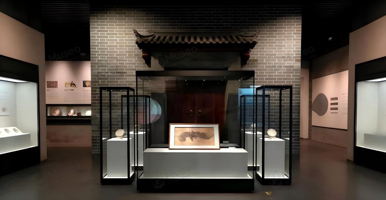 For porcelain artifacts, we have designed recessed display niches built into the walls. This embedded design integrates the display case seamlessly with the exhibition wall, directing the visual focus entirely onto the artifacts.
