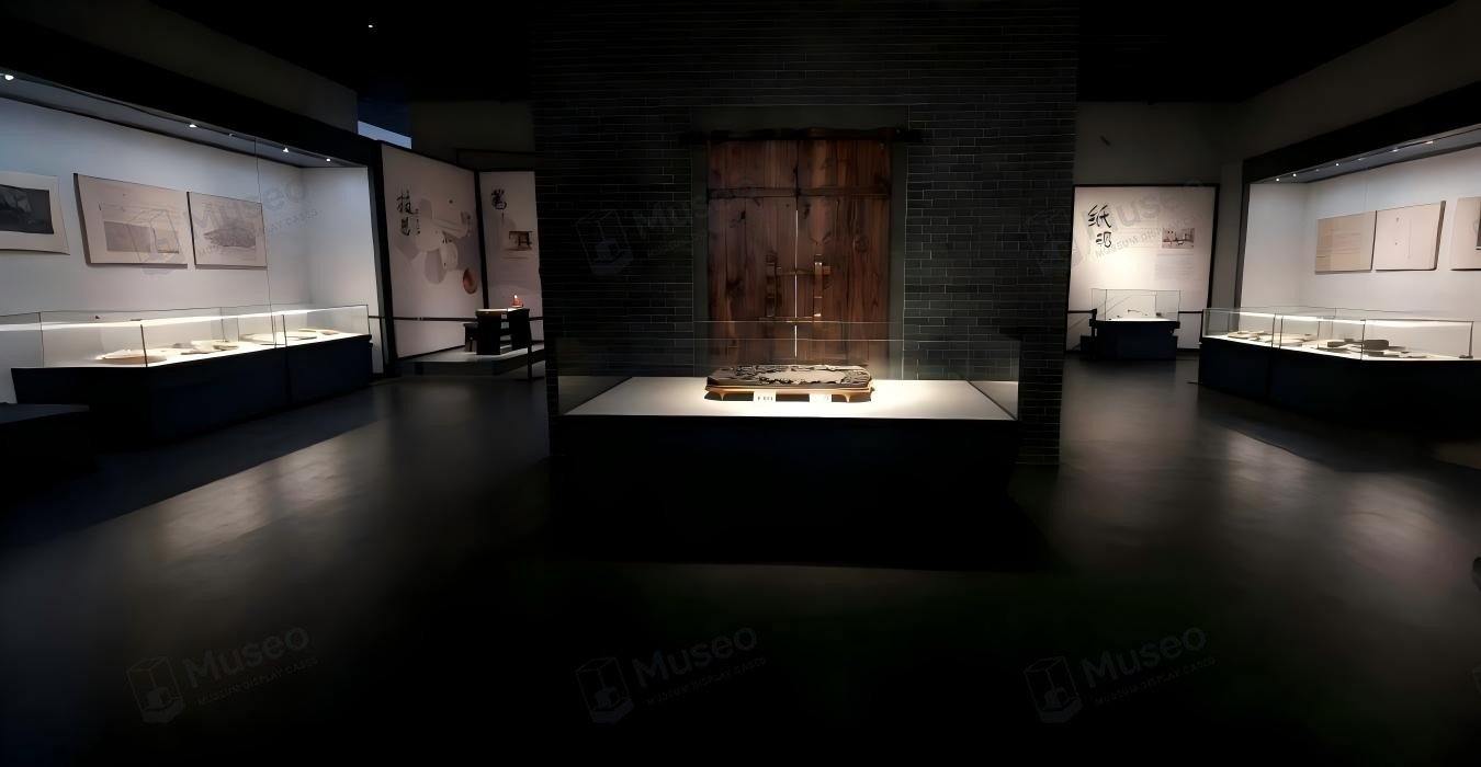 For stone sculpture artifacts, we have adopted low wall-mount museum quality display cabinets. This tiered platform design allows viewers to appreciate the three-dimensional carving technique of the brick carvings from multiple angles, both frontal and side. Professional lighting and low-reflection glass maximize the reproduction of the texture and details of the brick carvings, enhancing the visual impact.